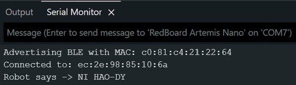 The Artemis board received the string value and printed an augmented string to the Serial Monitor.