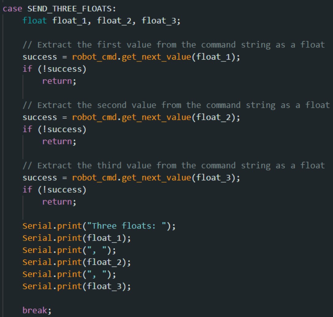 In case SEND_THREE_FLOATS, I wrote the following code.