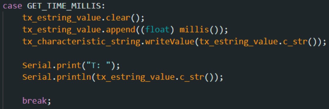 To add the new command GET_TIME_MILLIS to class CMD, I modified cmd_types.py and CommandTypes in ble_arduino.ino.
