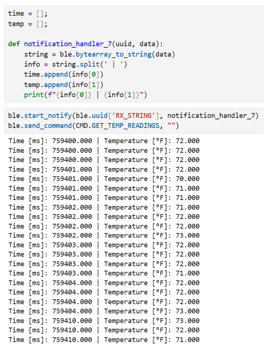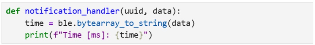 I wrote the following code to create a notification handler in a Jupyter notebook to retrieve the string value from the Artemis board. This string value contains the time stamp from the board.